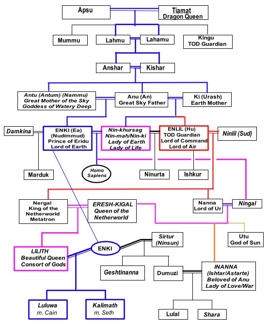 “Enki was not happy about his brother’s promotion because, although Enlil was the elder of the two, his mother (Ki) was Anu’s junior sister, whereas Enki’s mother (Antu) was the senior sister. True kingship, claimed Enki, progressed as a matrilineal institution through the female line, and by this right of descent Enki maintained that he was the first born of the royal succession.”
